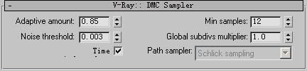 DMC Sampler[DMC采樣器]卷展欄中的參數用於控製全局的參數,所以在最終渲染出圖時,才提高其中的參數,以獲得更好的品質。