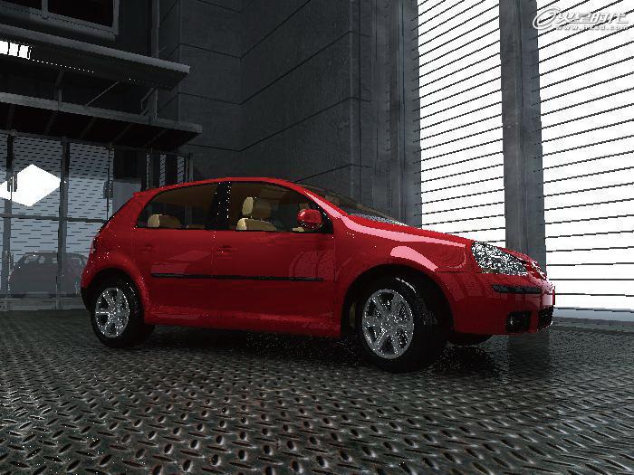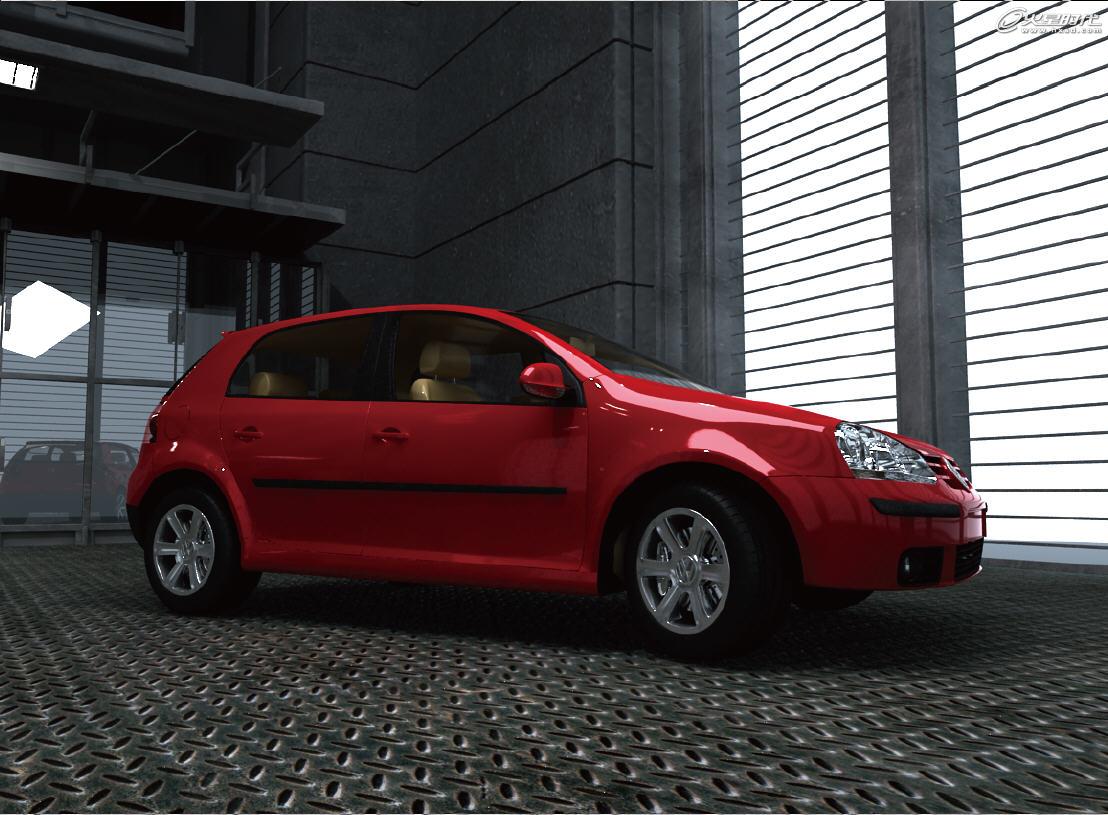 將汽車的模型顯示出來,使用前麵的渲染設置,再次對場景進行渲染,效果如下圖所示。